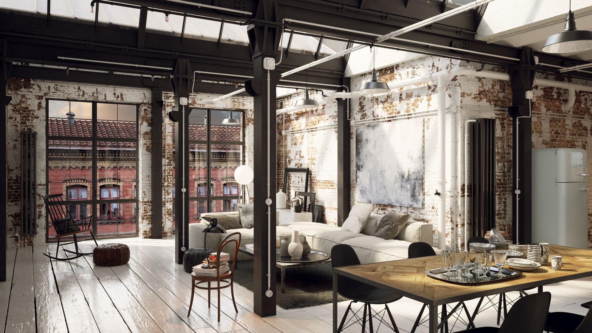 Индустриальная эстетика — это стиль, который зародился в середине XX века в условиях переоборудованных фабрик, заводов и промышленных зданий под жилые помещения.